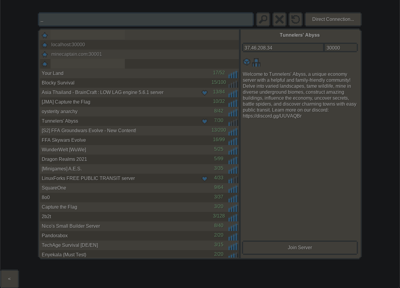 Server list: