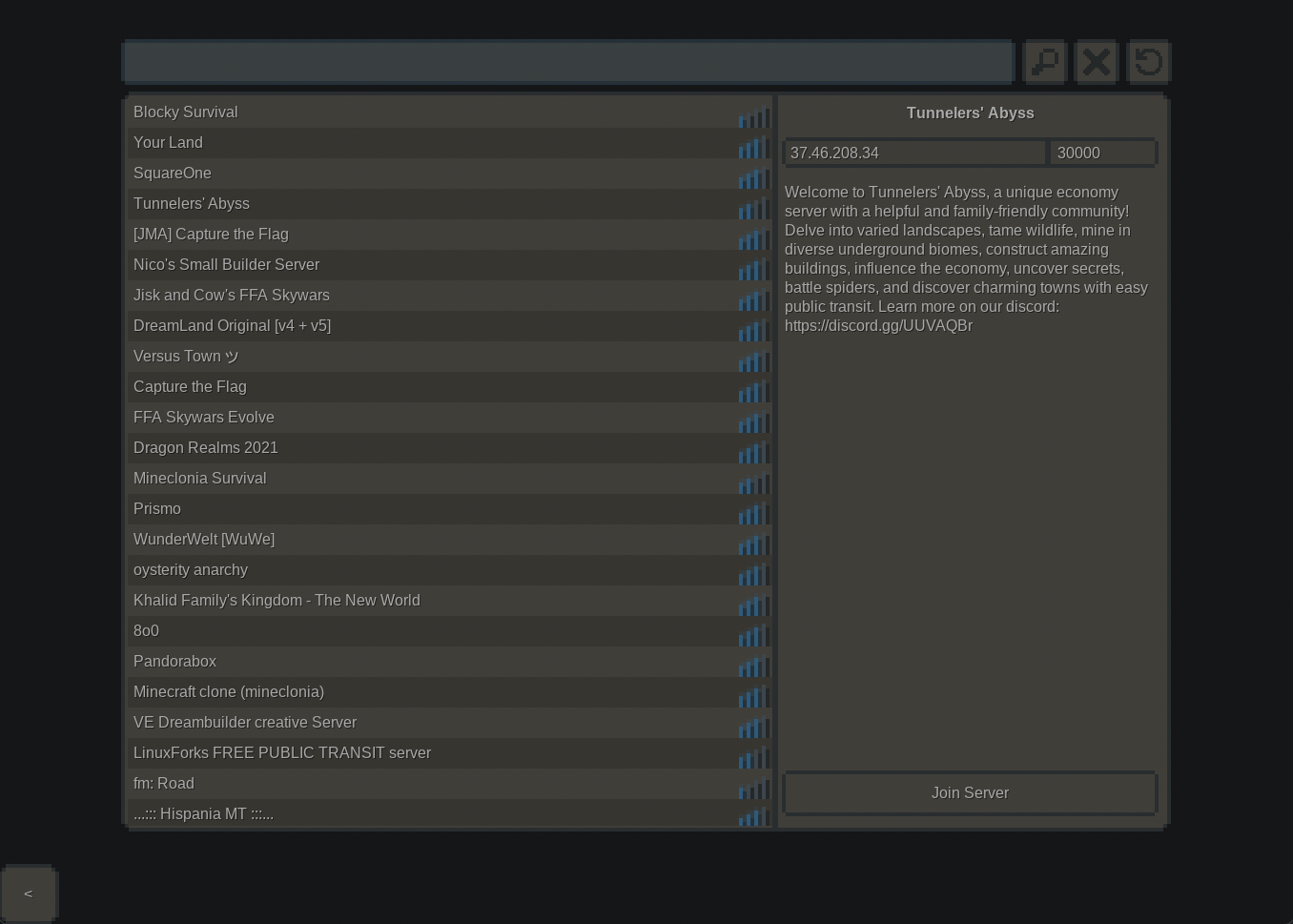 Server list: